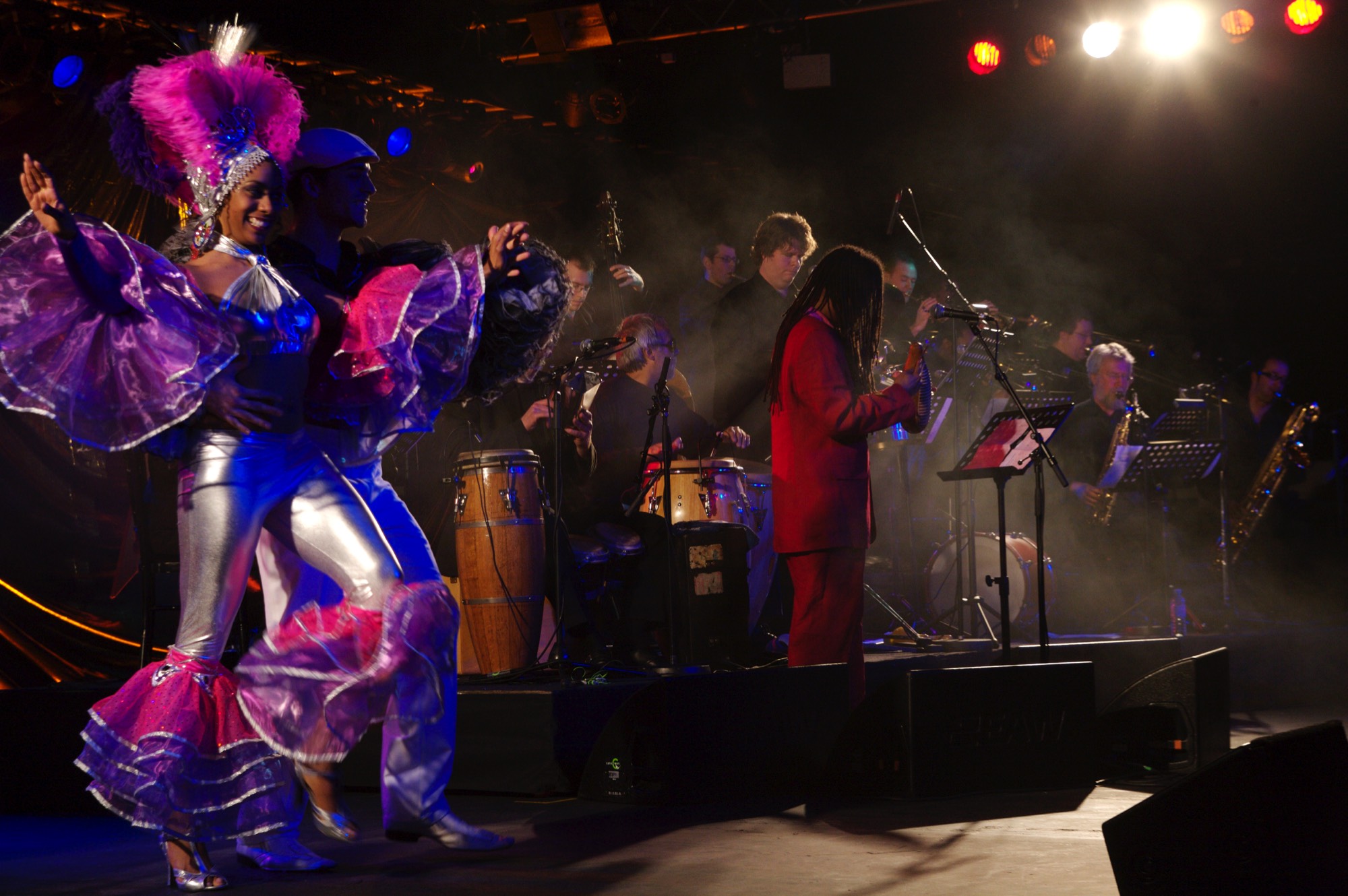 Two folkloric Cuban dancers - really getting into the groove of our Latin band