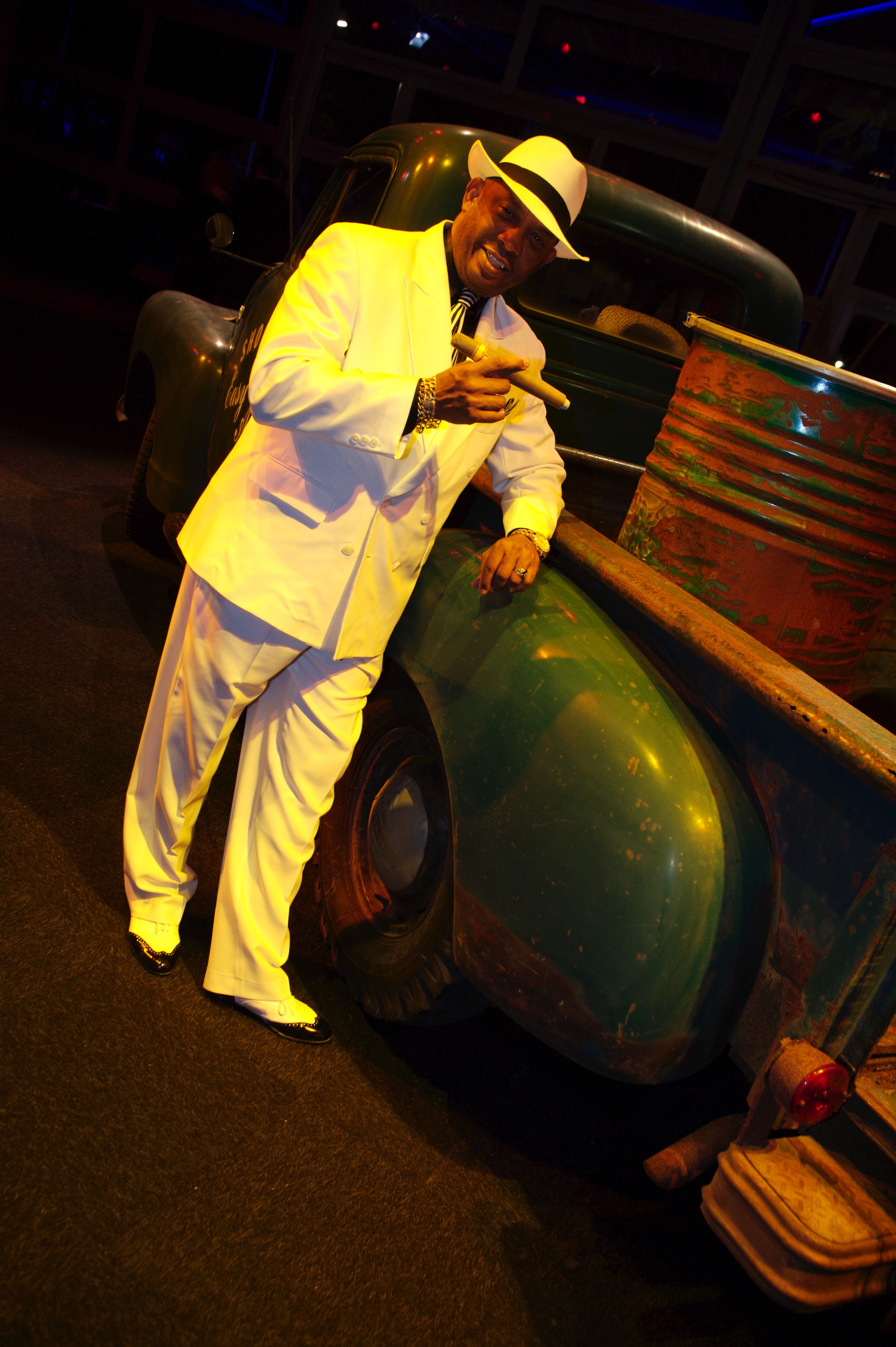A very cool dude! Actually one of our dancers, relaxing by a Cuban truck before coming to hear our Latin Band Cafecito!